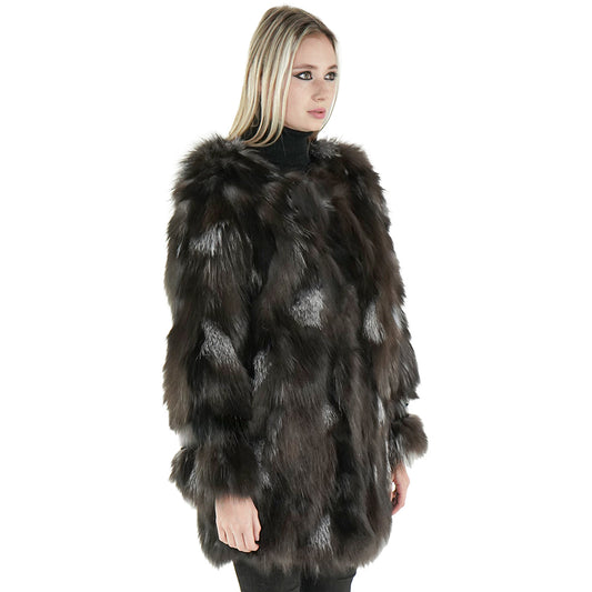 Genuine Rabbit Fur Coat "Dita” With Fox Collar
