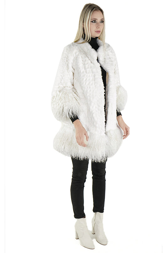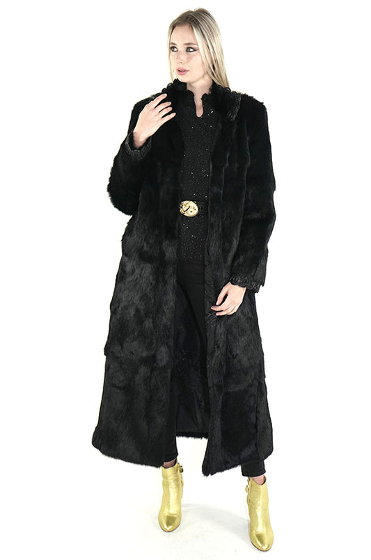 Black Rabbit Fur Coat With Mongolian Lamb Trim "Dot"