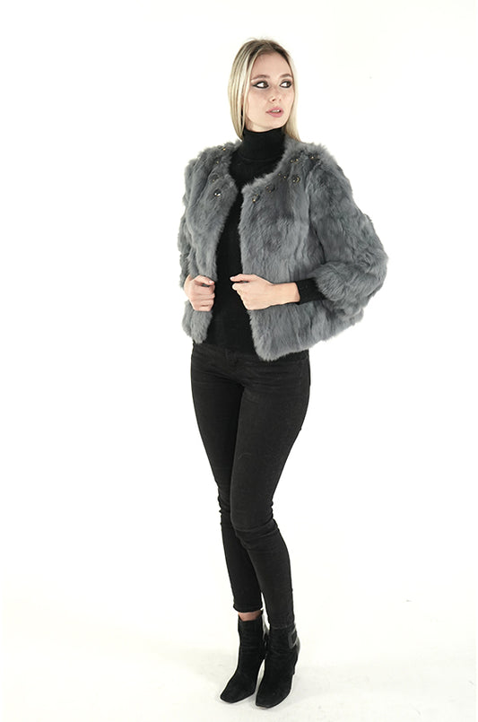 Beaded Gray Rabbit Fur Jacket "Dita"