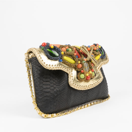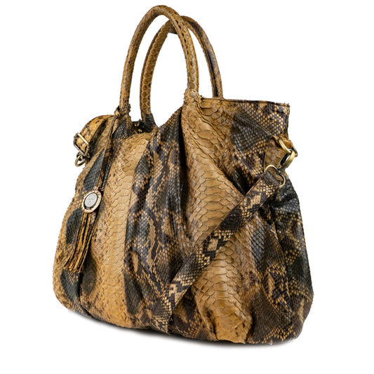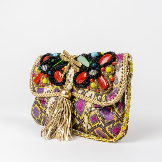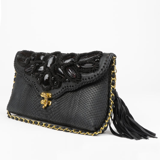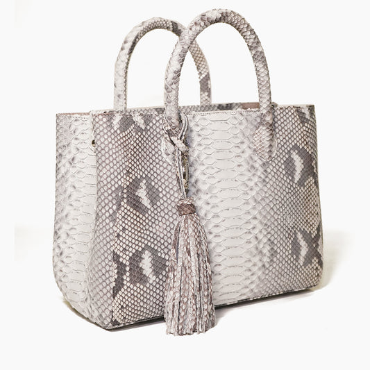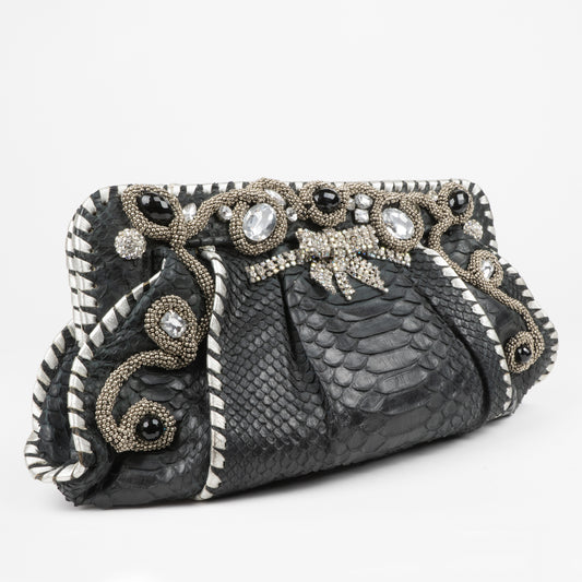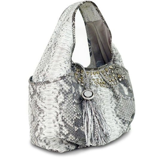 Beaded Gray and White Genuine Python Hobo "Jennifer"
