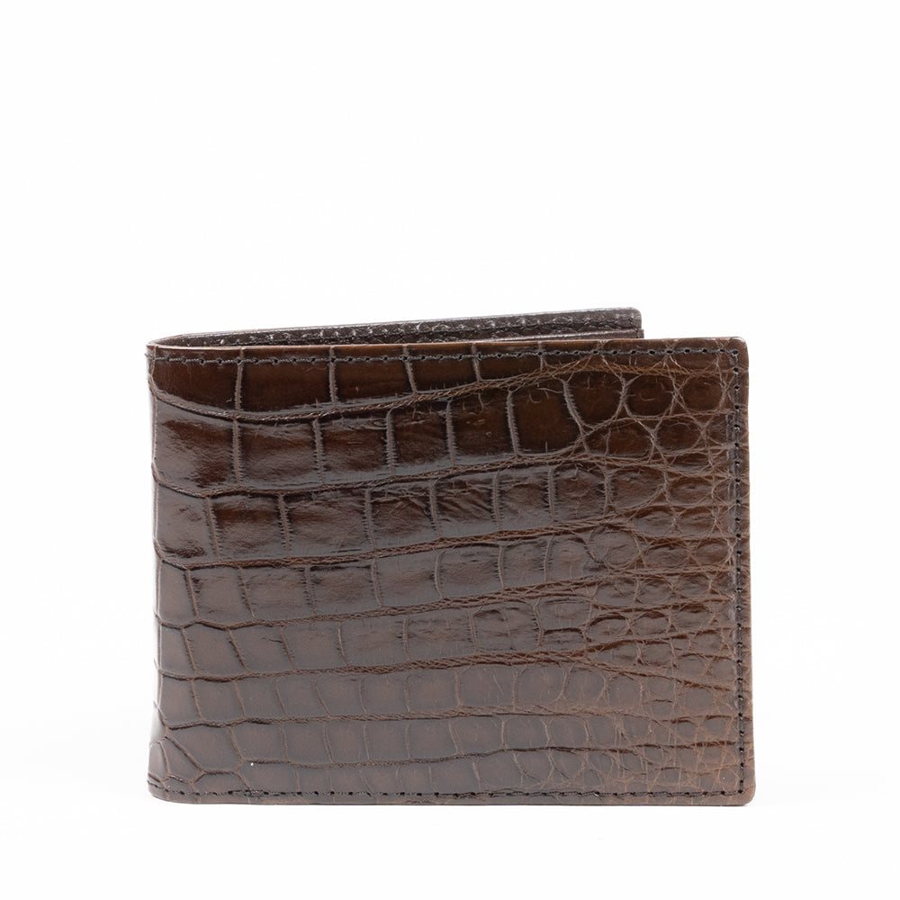 If you are one to match leathers in an outfit, you wouldn't be caught dead using a black wallet with brown shoes, so this wallet is for you. Genuine crocodile skin expertly tanned in a rich dark brown will get you compliments every-time you reach for your Amex.