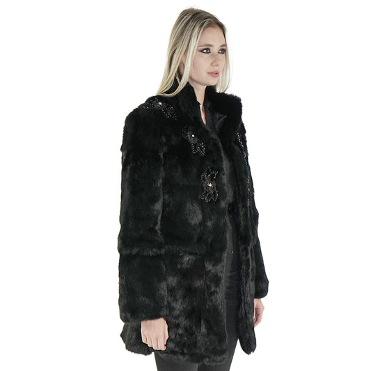 Black Real Rabbit Fur Coat "Nathalie"