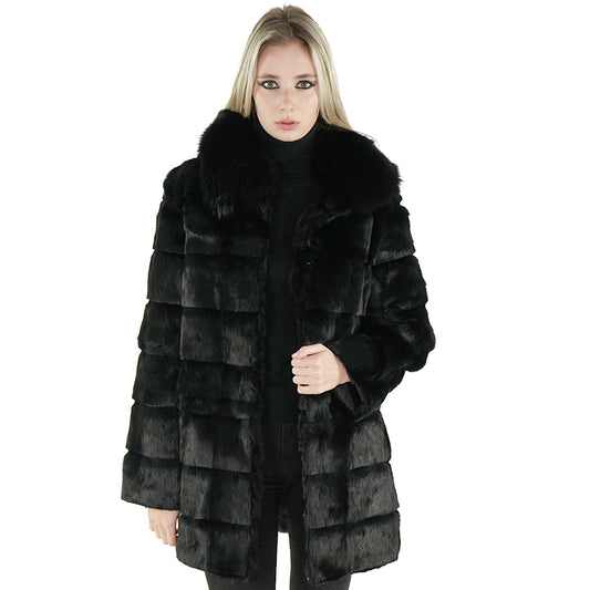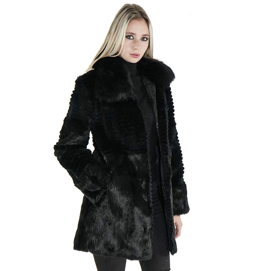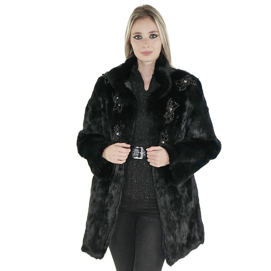 Black Real Rabbit Fur Coat "Rosa"