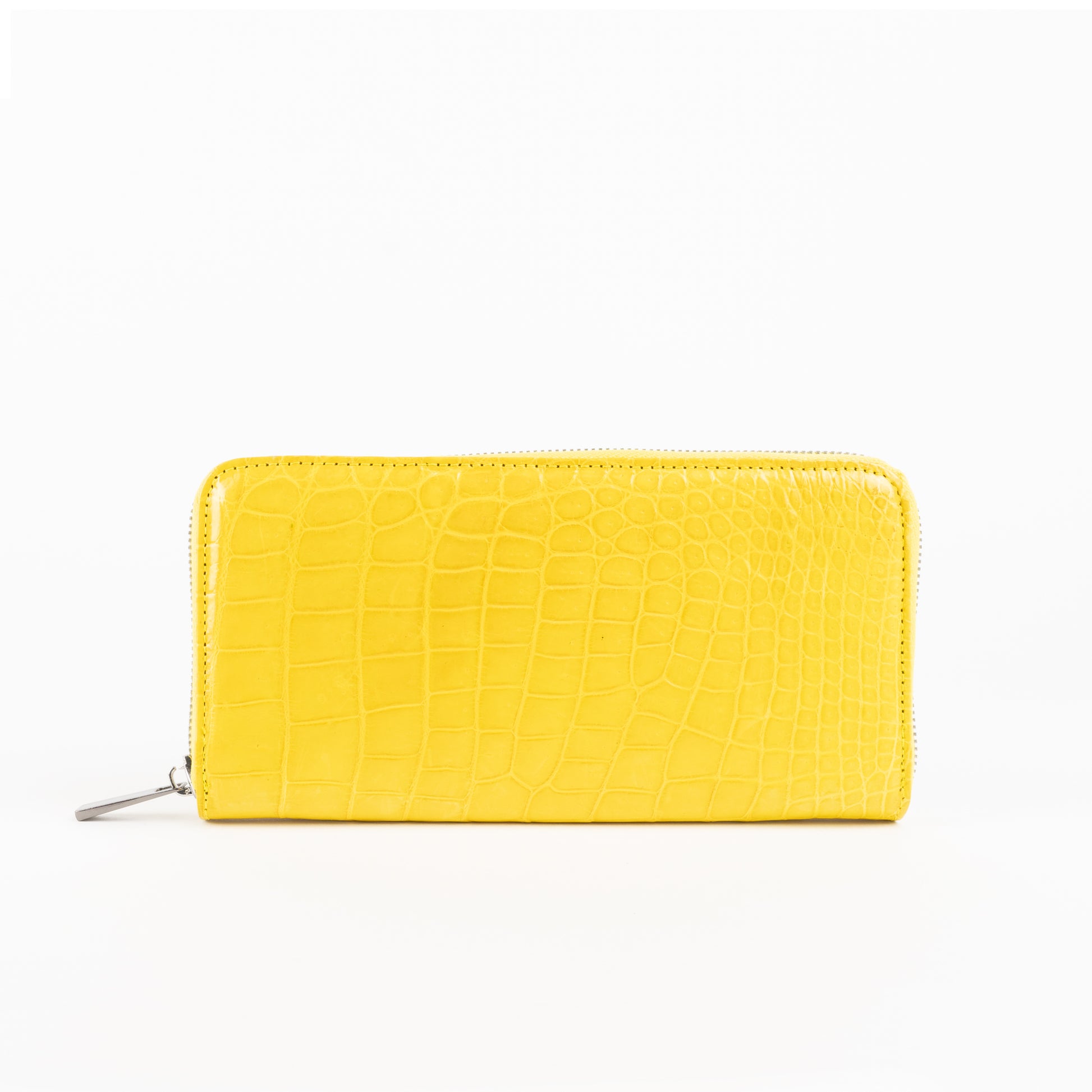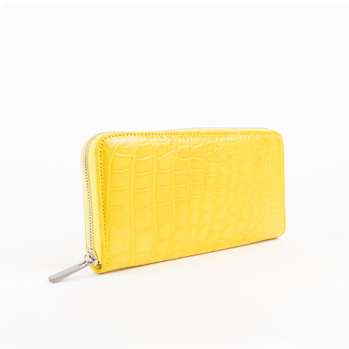 More ray of sunshine than wallet, this genuine crocodile beauty will bring a smile to your face every time you reach for it. Tanned in a bright, chic yellow and glazed to perfection, don't come to us when jaws drop at the cash register. Stylish and spacious, this wallet is the colorful accent every outfit wants.